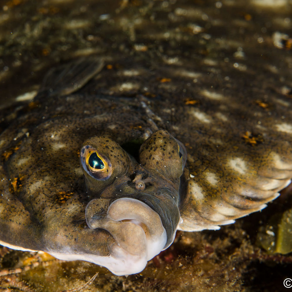 E siamo già giunti al termine di questa meravigliosa esperienza. L’ultima immersione ci regala l’incontro con la platessa Pleuronectes platessa, nota suo malgrado soprattutto per la bontà delle sue carni, ma molto affascinante nel suo ambiente naturale, ossia i fondi detritici in acque fredde.