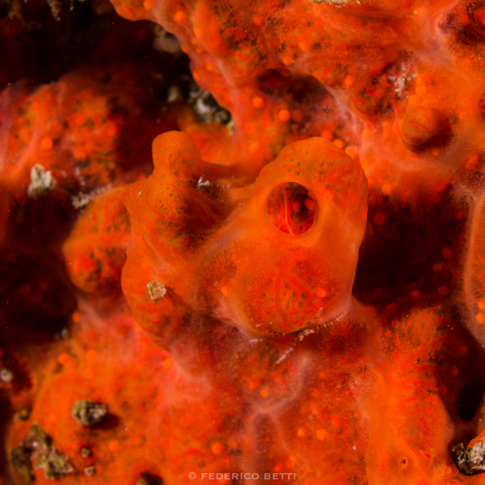 Crambe crambe, spugna incrostante estremamente comune nel Mediterraneo a bassa profondità, è vivipara: la femmina capta gli spermi emessi dal maschio nella colonna d’acqua e li utilizza per fecondare le proprie uova, che poi incuba fino alla schiusa, rilasciando infine larve di circa 1 mm di lunghezza! Con un po’ di attenzione, nel periodo tardo-primaverile-estivo è possibile osservare le larve, come piccole palline oblunghe arancioni, nei canali della spugna, pronte per essere espulse, e talvolta capita anche di vederle trasportate dalla corrente nei pressi della superficie, in attesa di aderire al substrato!